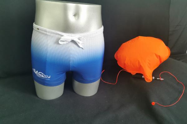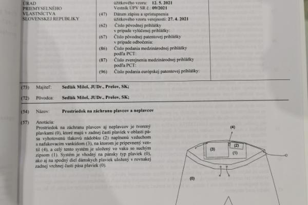 Tento patentovaný projekt má názov záchranné a bezpečnostné plavky. Patent (úžitkový vzor) je na Slovensku registrovaný pod číslom PÚV 155/2020 na úrade priemyselného vlastníctva Slovenskej republiky. Plavky v prezentačnom videu nezobrazujú konkrétny strih ani dizajn plaviek, ale jedná sa hlavne o novú technológiu a výrobu tlakovej nádobky s dostatočným množstvom stlačeného vzduchu pre okamžité vypustenie vzduchu do nafukovacieho vankúša po potiahnutí šnúry umiestnenej v ľavej časti plaviek osobou vo vode a to spôsobí okamžité nafúknutie zrolovaného vankúša. Tento vankúš pri spustení procesu otvorí vrchnú časť ,,vaku" umiestneného v zadnej časti plaviek a následne sa tento nafúknutý vankúš vyplaví na hladinu vodnej plochy. Tento nafúknutý vankúš je o plavky prichytený so špagátom o dĺžke cca 1 meter z toho dôvodu, aby sa po nafúknutí nevzdialil od osoby, ktorá sa potrebuje zachrániť v tak krátkej dobe. V dnešnej dobe takéto riešenie na základe vykonanej rešerše úradu priemyselného vlastníctva Slovenskej republiky vo svete ešte neexistuje, preto sa jedná o revolúciu vo výrobe a následnom predaji produktu pod značkou eMSky.
