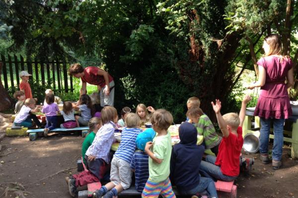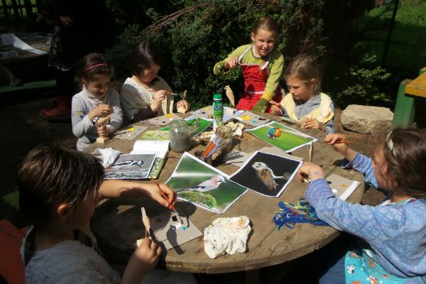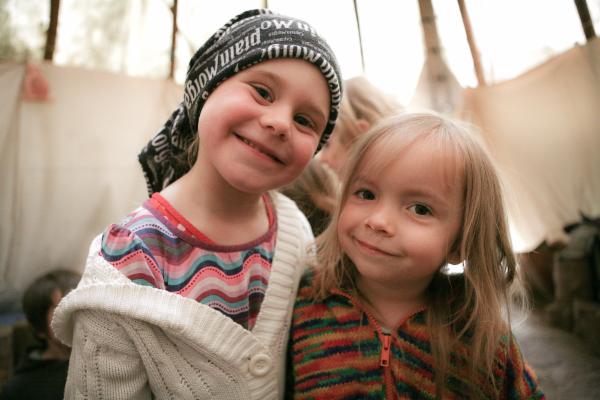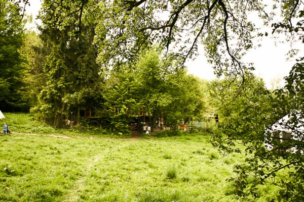Sídlíme v Řevnicích, kam se většina z nás přestěhovala, na romantické louce pod lesem. Před lety jsme z přebytku na konci školního roku koupili týpí. Tam se scházejí školkové děti na oběd, když prší nebo mrzne a někdy i dřív ke společnému vytváření. Pro školáky máme pronajatou chaloupku.