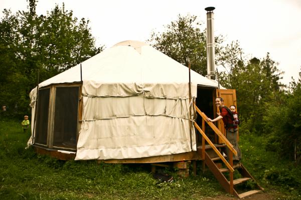 "Potřebujeme ještě nějaký prostor na divadlo, tancování, cvičení, meditaci ", přáli jsme si - jurta by byla ideální, ale kde na ní vzít peníze? Vtom se objevila rodina, která nám nabídla odstěhovat k nám jurtu, kterou budeme moci během týdne užívat, výměnou za školné. Hurá! Klaplo to a jurtu máme - spadla nám do klína a najednou máme krásný prostor s teplou podlahou, v létě i v zimě. Pečeme tu chleba, tancujeme, hraje se tu divadlo, lidé ze všech končin světa zde vypráví o svých domorodých kulturách, probíhají tu semináře zaměřené na přirozené rodičovství, ženské skupiny, komunitní letní tábory a nově i Klubíčko pro maminky s nejmenšími dětmi.