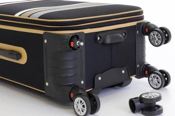 U většiny kufrů, jsou dvojitá kolečka s tichým pojezdem (kolečka jsou potažena měkkou směsí) a snadno vyměnitelná.