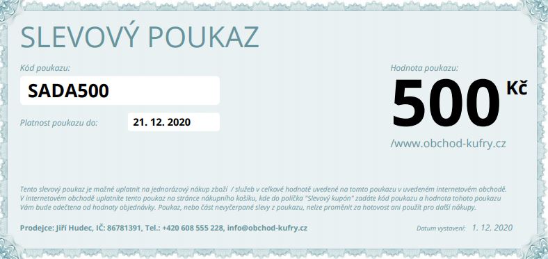 Kvalitní značka cestovních kufrů na trhu od roku 2016. Za příspěvek získáte výhodný voucher a dárek