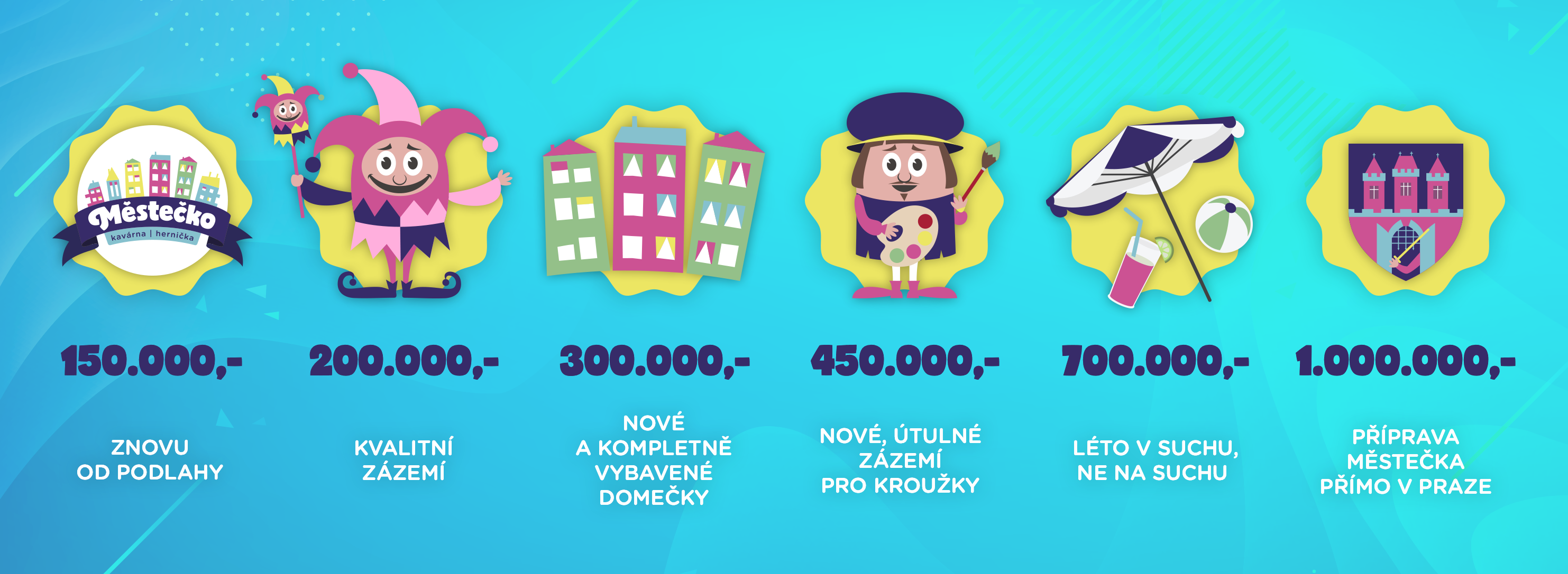 Pojďte společně s námi znovu vybudovat oblíbený prostor pro rodiny s dětmi - kavárnu s originální dětskou hernou Městečko. Čím více milníků společně pokoříme, tím jedinečnější prostor vytvoříme.