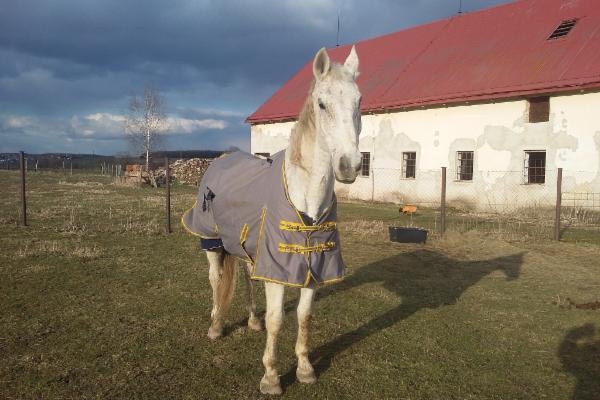 24. 3. jsme ve stáji přivítali na kost vyhublého starého koníka s vypíchnutým očičkem. Majitelka ho před časem vykoupila z hrozných podmínek, ale kvůli zdravotním komplikacím mu urgentně hledala náhradní domov. O jednookého, starého a v minulosti týraného koně moc velký zájem nebyl, navíc majitelka neměla moc času, takže jsme přes noc postavili box, aby k nám koník mohl přijet.
