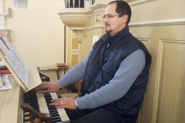 Vít Janata - zvukař a vydavatel ve svém studiu Chorus, varhaník v pražské Loretě a skladatel