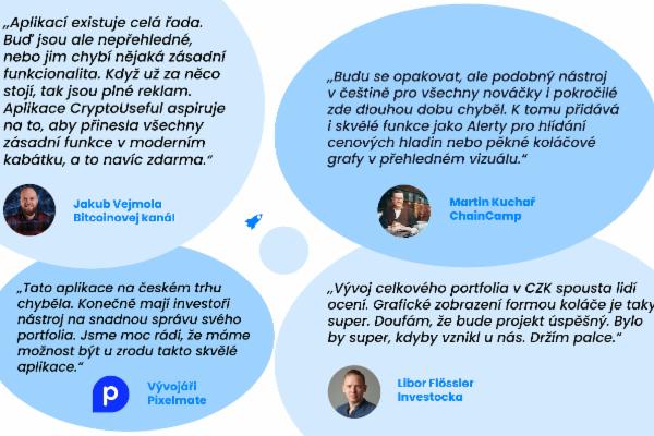 Pomozte nám vytvořit aplikaci, která bude vaším užitečným společníkem. CryptoUseful je plnohodnotná mobilní aplikace zaměřená na sledování vašeho kryptoměnového portfolia. Vhodná jak pro úplné začátečníky, tak i pokročilé investory.