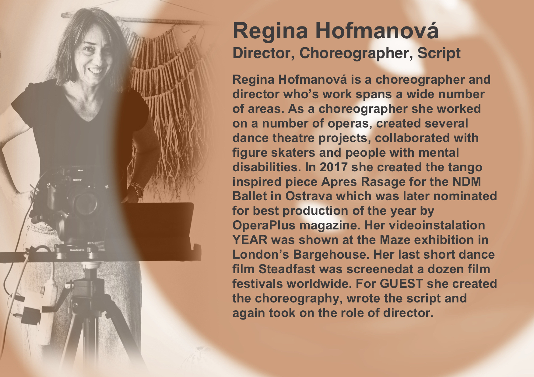 The initial idea to create the GUEST dance film stemmed from an original project of our choreographer and director Regina Hofmanová, created in the fall of 2020. The two dancers for this project were foreigners (from Italy and Portugal) and, together with the choreographer. they developed the theme of a guest in a foreign country, a visit, and various ideas around hospitality. This basic thread - and some of the situations from this project - formed the germ of this film; and were augmented in several other aspects, such as a variety of locations and a bit of absurd humour. Due to the universal and timeless nature of its theme we hope our film will make a mark at film festivals.