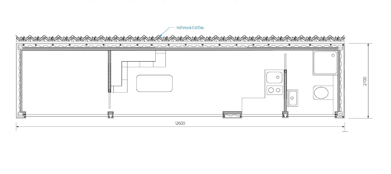 Tiny House má obytnou plochu skoro 28m2, je z jednoho kontejneru a vyjde Vás levně. Přitom obsahuje vše, co potřebujete k pohodlnému životu. Koupelnu se sprchou, umyvadlem a toaletou, kuchyni se dřezem a vařičem, jídelnu a dveřmi oddělenou ložnici.