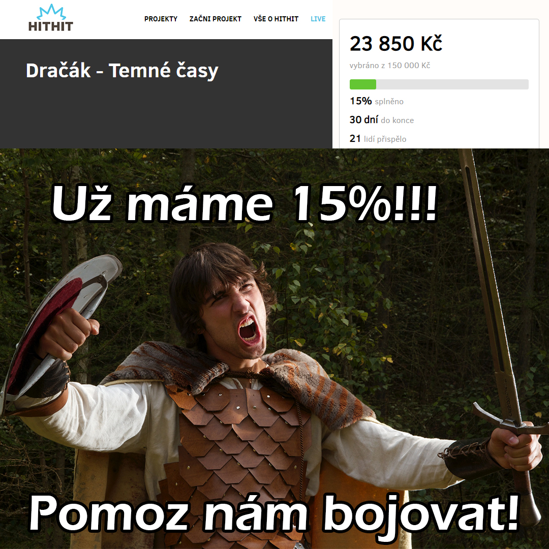 Po prvních dnech máme již 15% z cílové částky, není to sice ještě 100%, ale nevzdáváme to a jsme teprve na rozjezdu. Věříme, že se projekt podaří a druhá série Temných časů bude fenomenální!!!