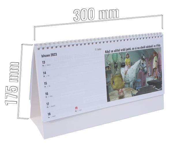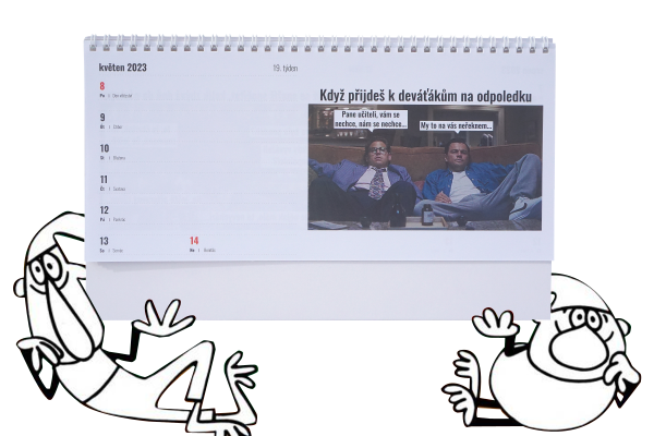 V kalendáři najdete u každého týdne vtip z humoristické stránky pro učitele, v tomto navíc šest na internetech nepublikovaných.
