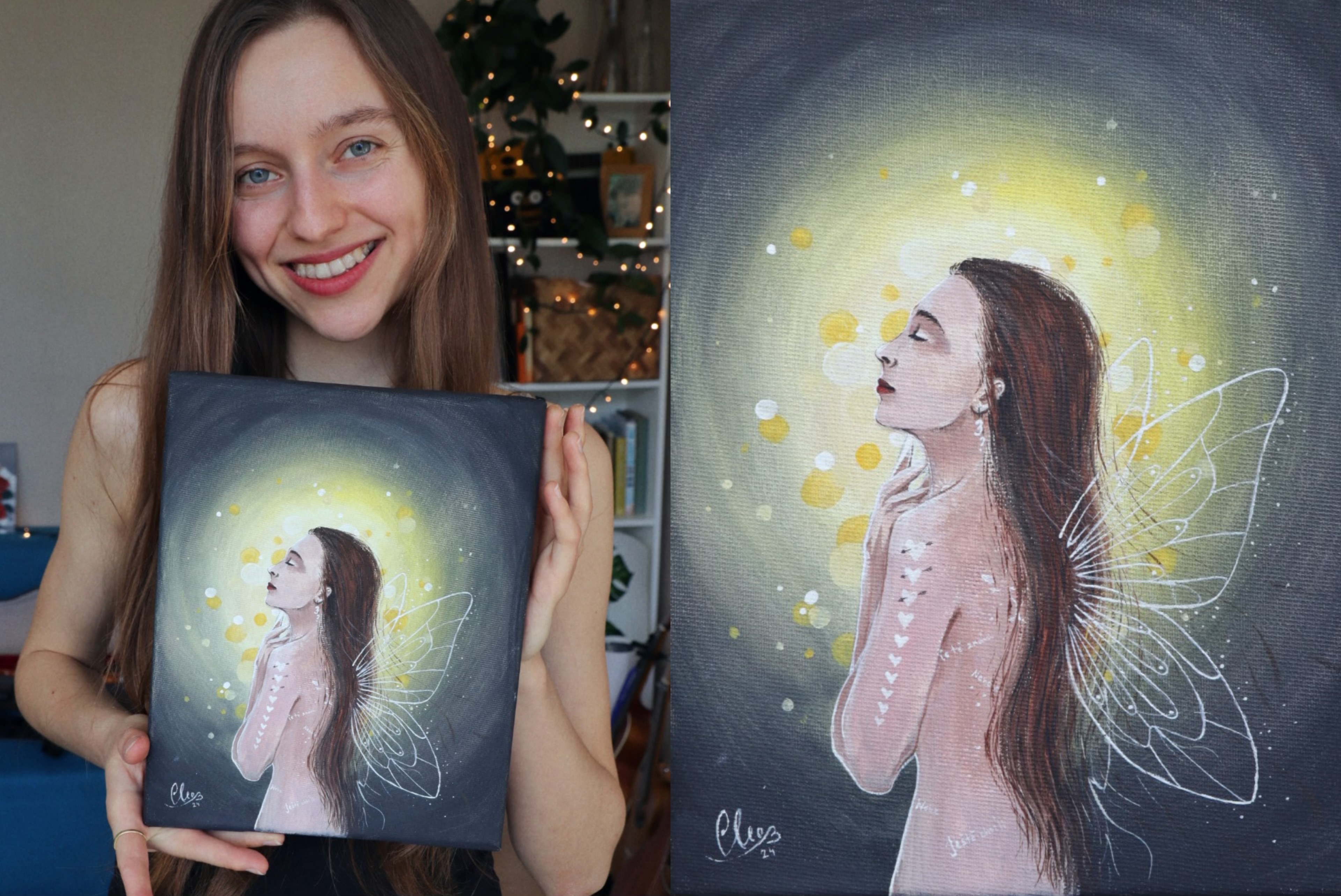 Mezi odměny jsem zařadila také vizualizaci obalu alba formou originální malby. Ke každému hudebnímu nosiči zaslanému za hithit dostanete placku s touto vizualizací, ta nikdy nebude prodejná zvlášť!