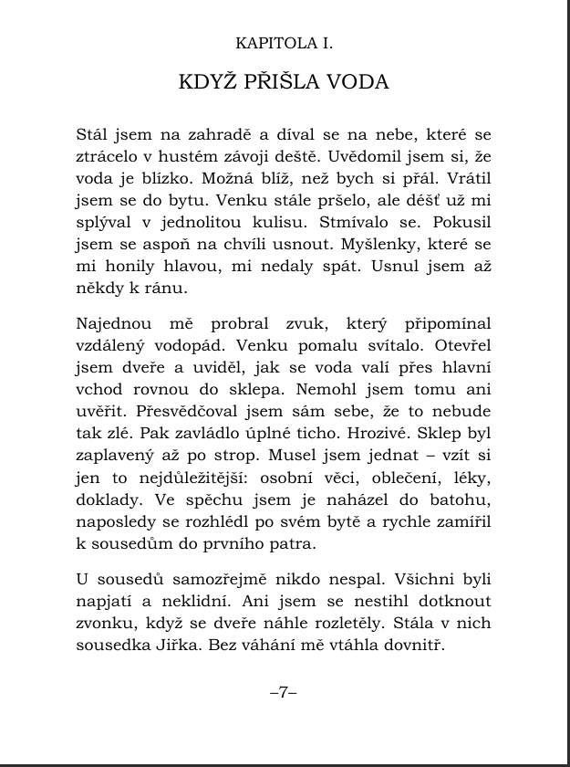 Povodně mě připravily o domov a zanechaly mě i mou rodinu a přátele bez střechy nad hlavou. Po několika měsících jsem se rozhodl tuto katastrofu zdokumentovat a napsat knihu, aby se na tyto příběhy nikdy nezapomnělo.