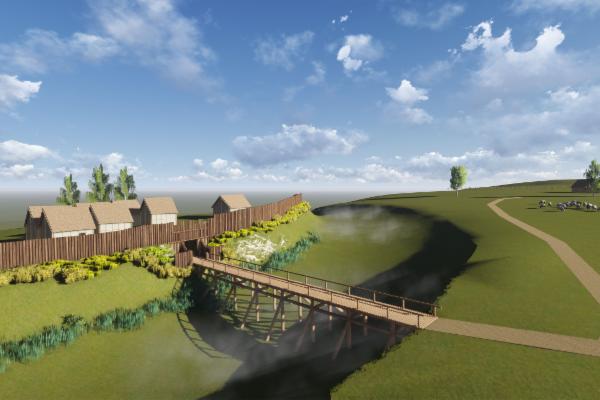 Replika mostu z doby bronzovej bude realizovaná ponad priekopu, ktorá chránila pôvodné obyvateľstvo pred nájazdmi cudzích kmeňov. Zrekonštruovali sme doteraz chalupu z doby bronzovej, ochranný val s palisádou.
