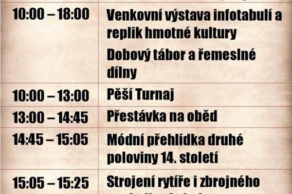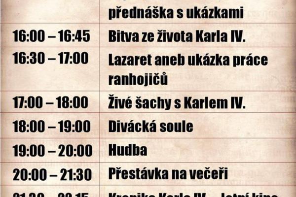 A three days long festival near great Karlstein Castle will present life in middle ages, in the age of Charles IV, King of Bohemia and Holy Roman Emperor. More than two hundered participants will create an authentic medieval spirit and show.