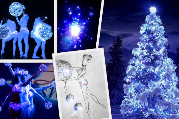 Je to jednoduché. Chtěli jsme spojit umění, světlo a tanec, které nás fascinují, abychom vytvořili něco nového a výjimečného. Měli jsme představu světelných tanečnic-gymnastek, které budou mít šaty "upletené" z barev a světla. Ve světě jsme nic podobného nenalezli - o to složitější a zajímavější byla naše cesta. Získali jsme technickou a uměleckou podporu a příběh začal. Naše první kostýmy můžete vidět na foto níž - byly prvním krokem našeho světelného umění. Jak vidíte, celé to začíná pouhou kresbou na čtvrtce. To zajímavější začíná až poté...