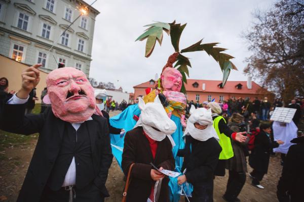 Začalo to před pěti lety na břehu řeky Rýna ve švýcarské Basileji, kde jsme se zcela nečekaně stali svědky satirického karnevalu Fasnacht. Město uprostřed Evropy se každý rok na tři dny promění ve fascinující slavnost, rej satirických masek i hudební symfonii, na kterou se Basilejci připravují v podstatě celý rok. Tato pozoruhodná tradice oživuje město, vytváří sítě vztahů a poskytuje lidem nový způsob, jak se zajímat o veřejné dění. Něco takového chceme taky, říkali jsme si. A tak jsme uspořádali první ročník Sametového posvícení.