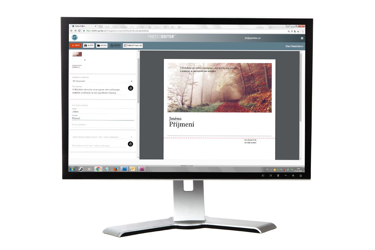 1/ Naši unikátní webovou aplikaci ParteoEditor, díky které se zlepší způsob tvorby a objednávání parte na našem webu, a naše parte budou moci snadno nabízet lidem i hospice a pohřební služby.