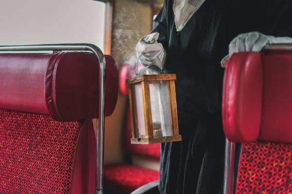 Samotné vyprávění je proloženo hereckými mikroetudami přímo ve vlaku a někdy výpravnými vstupy přímo v krajině nebo mikrovstupy v okolí vlaku. Ujíždějící České středohoří hraje jednu z hlavních rolí. Při zpáteční cestě se již stmívá, což umožňuje využití divadelních světel přímo v krajině k dotváření atmosféry příběhu. To klíčové se ale bude odehrávat přímo ve vlaku.