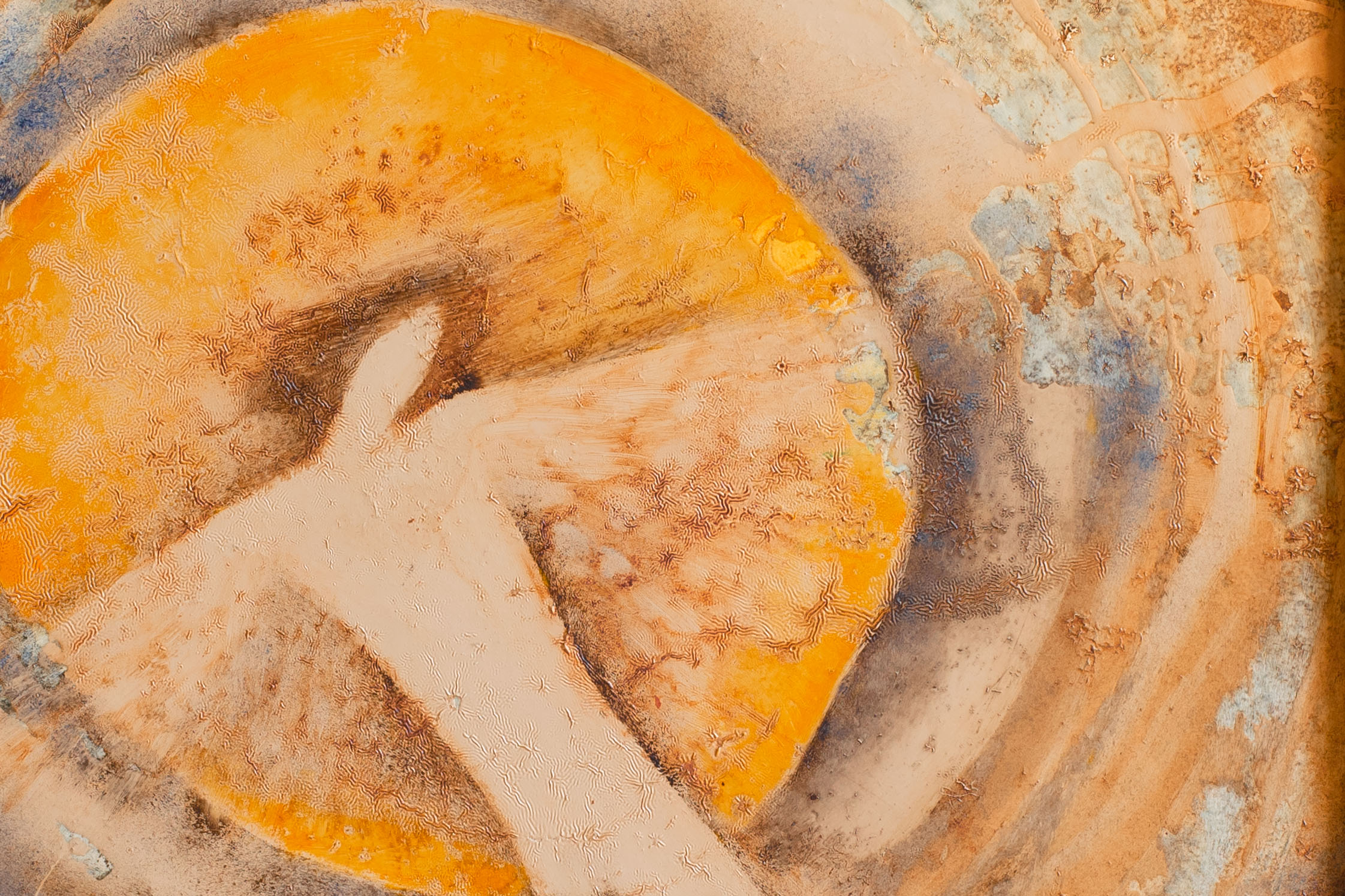 Eva Jandejsková – na jejích keramických vázičkách všelijak tvarovaných jsem jako dítě utírala prach, protože moje maminka jí měla ráda. Naštěstí se mi povedlo nic nerozbít, a snad proto jsem se s ní mohla potkat poté, co jsme obě vyrostly. Já do šířky a křehká Eva do autorky obrazů kombinované techniky. Její obrazy jsou také křehké, tak opatrně. Zrození dne