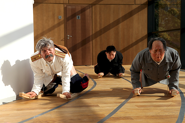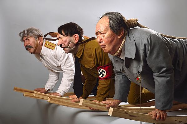 Každý z diktátorů má charakteristické atributy. Hitler koňské udidlo a uzdu, jako specifický roubík, jeho silnou stránkou byla rétorská vystoupení. Stalin má ohlávku, otěže a sedlo s třmeny, nahý zadek- snad inspirace pro bičík... Celé čtyřčlenné diktátorské stádo bylo vystaveno v Trutnovské galerii UFFO, kde si lidé při vernisáži spontánně sedali na sochy, plácali je po zadcích, nebo hrozili zvednutými ukazováky. Budí opravdu širokou škálu emocí!