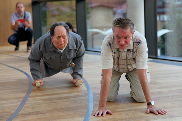 Chtěla bych diktátory v podobě houpacích koní instalovat na otočnou plošinu, která by simulovala dětský kolotoč. Figury by byly na otočné platformě umístěné v závodních drahách, které by vedly stále dokola. Instalace by se tím scelila a získala tak nový pohyblivý rozměr.