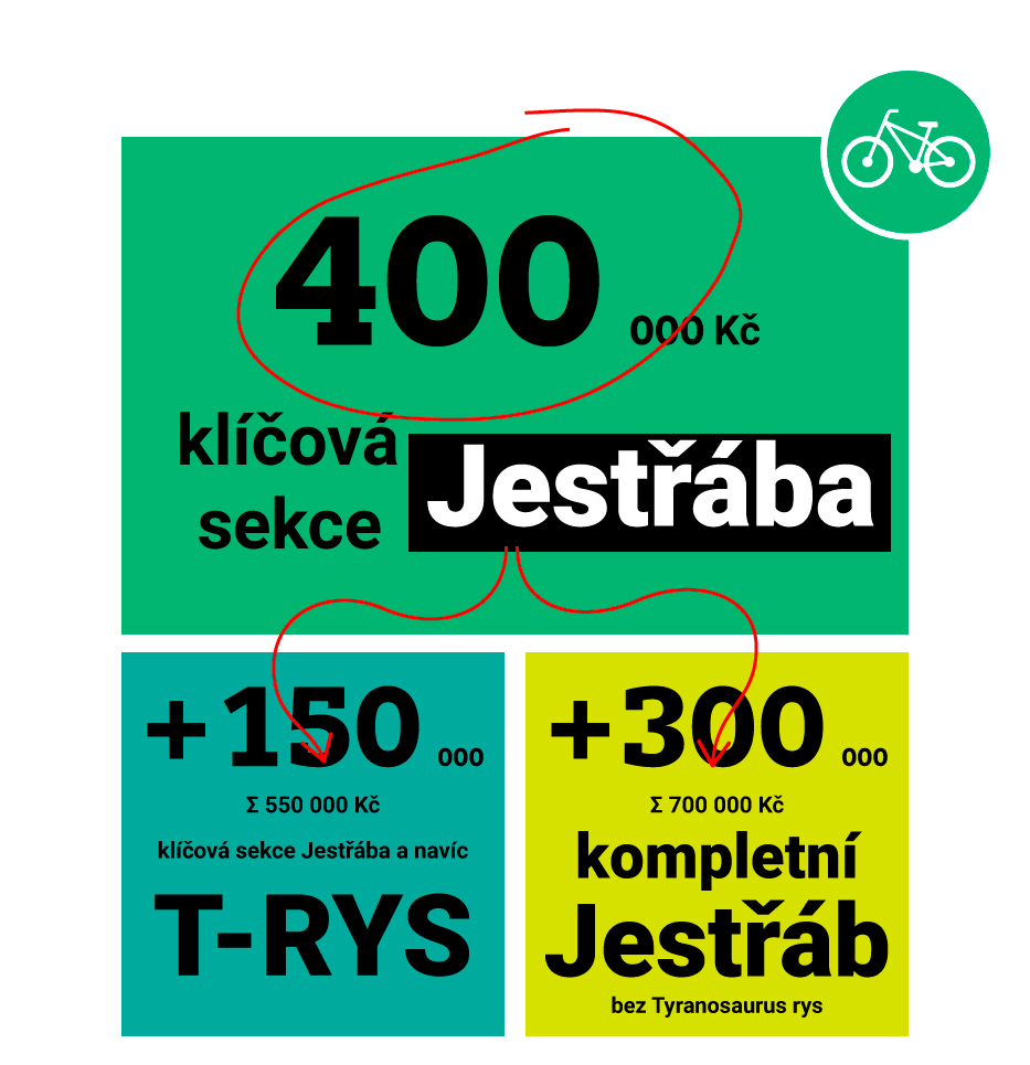 If you'll contribute with 400 thousand Czech crowns (approx 15 thousand EUR): we will build a brand new "key section" of this "Hawk trail" („Jestřábí trail"). And we'll be able to keep the team at work for at least next 2 months.