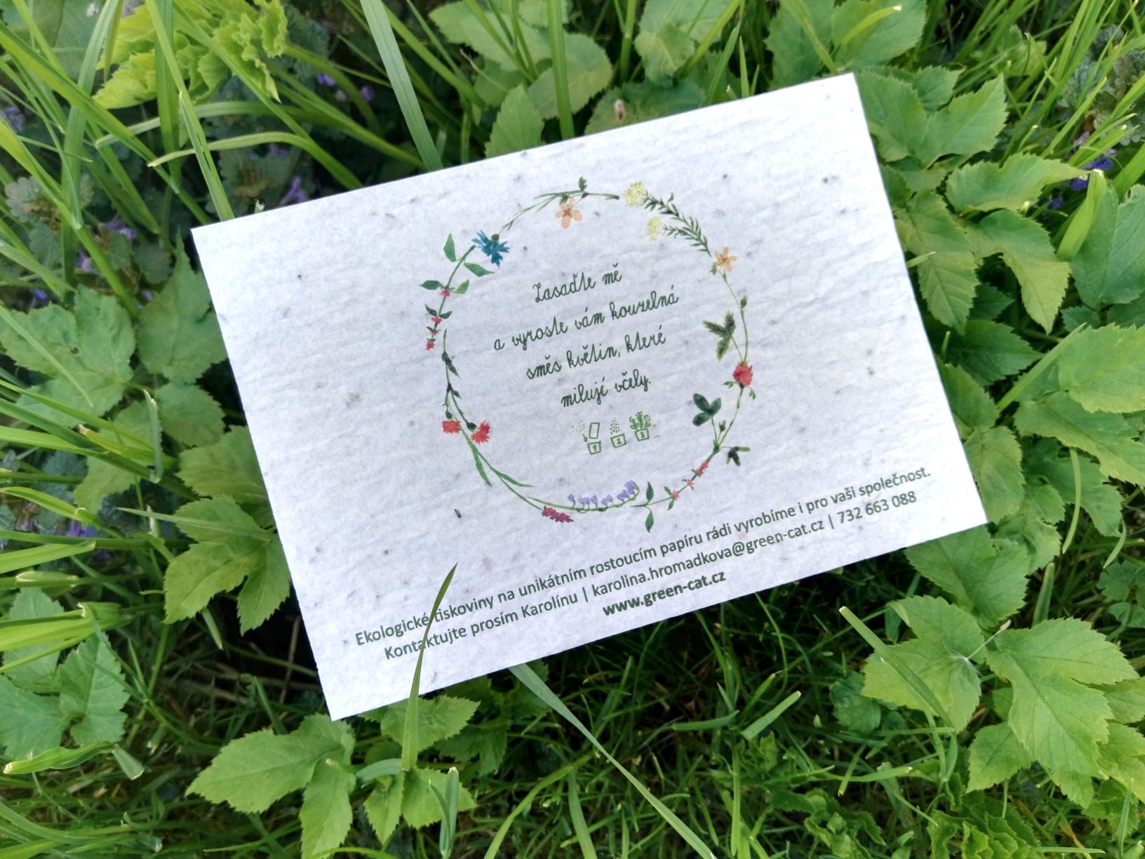 Rostoucí papír je 100% přírodní produkt a ekologie je na prvním místě. Semínka vyrostou, papír se rozloží a tisk je přírodními pigmenty, takže půdě neublíží. Doteď jsme ale dokázali tisknout pouze v Holandsku. Na ekologii nám upřímně záleží. Proto nyní budujeme tiskárnu v Čechách, co nejblíže k našim zákazníkům. Snížíme tak dopady na životní prostředí z dopravy. Důležité ale také je, že díky tomu snížíme ceny a navíc už nebudeme muset kvůli vysokým nákladům na dopravu odmítat menší zakázky. Vytiskneme vám i mini zakázku od 30 kusů.