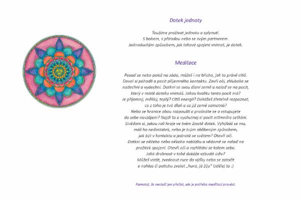 Uvědomili jsme si, že když propojíme dvě harmonizující cesty, vznikne úžasný nástroj pro všechny, kteří by jinak při samotné meditaci nebo samotné tvorbě mandaly mohli zbytečně tápat. Zjistili jsme, že když se dají prožitkové meditace a kreativní mandaly dohromady, najednou vše funguje lehčeji. Lidé se dokáží naladit na svá nitra s větší tvořivostí a přirozeností.