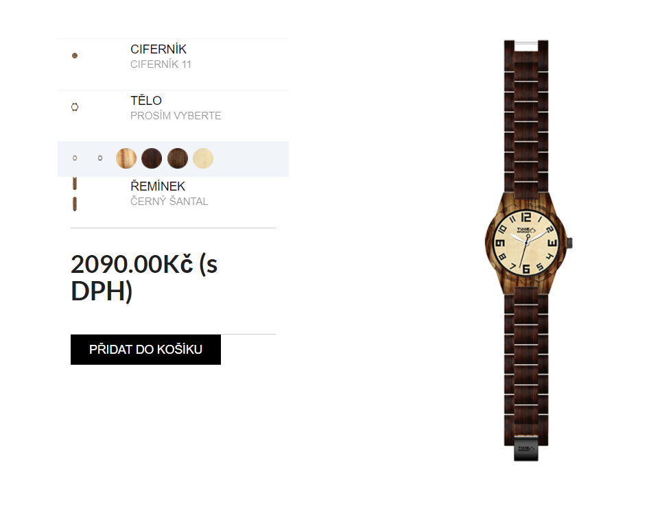 Fantazii se meze nekladou, a proto chceme lidem umožnit, aby si graficky sestavili vlastní model dřevěných hodinek, který následně vyrobíme a ještě doplníme o laserové gravírování na přání. Možnost vytvořit až 1248 kombinací.