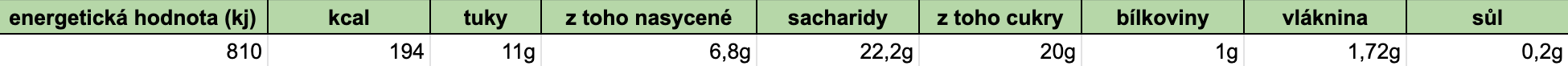 Nutriční hodnoty na 100g zmrzliny (matcha):
