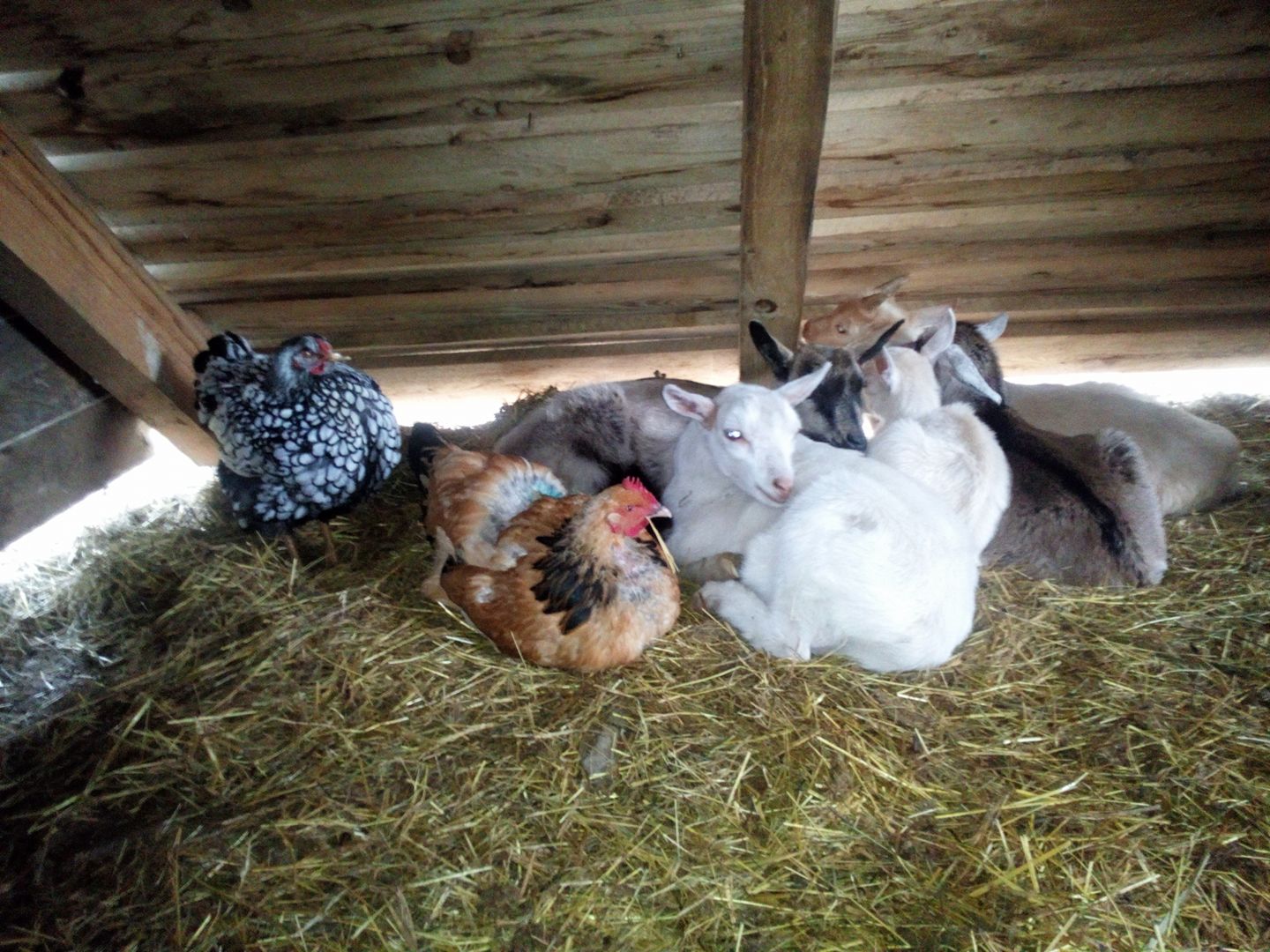 Naše slepice se u nás mají dobře. Krmíme je pouze zrním, řepou, bramborami, mlátem, syrovátkou, přilepšujeme skořápkami kvůli vápníku. Na noc je zavíráme kvůli predátorům, ale přes den si chodí, kde chtějí, pasou se, hrabou si, popelí se všude v okolí našeho statku.