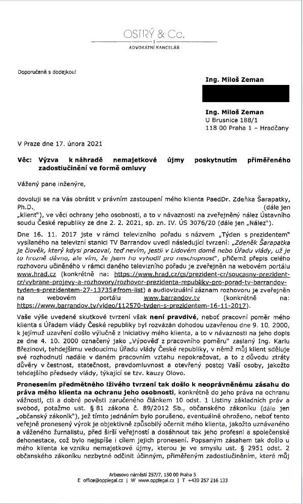 Projekt občanské solidarity se soudními výlohami obětí lží a urážek prezidenta Miloše Zemana.