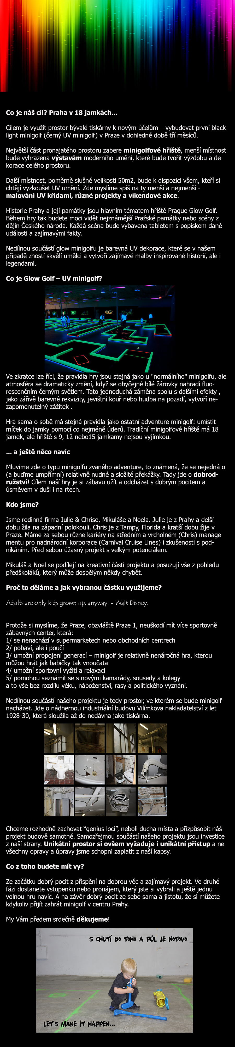 Black Light minigolf, černý UV minigolf je první svého druhu v Čechách. Jde o krytý minigolf, který se může hrát celoročně a za jakéhokoliv počasí a fyzické kondice.