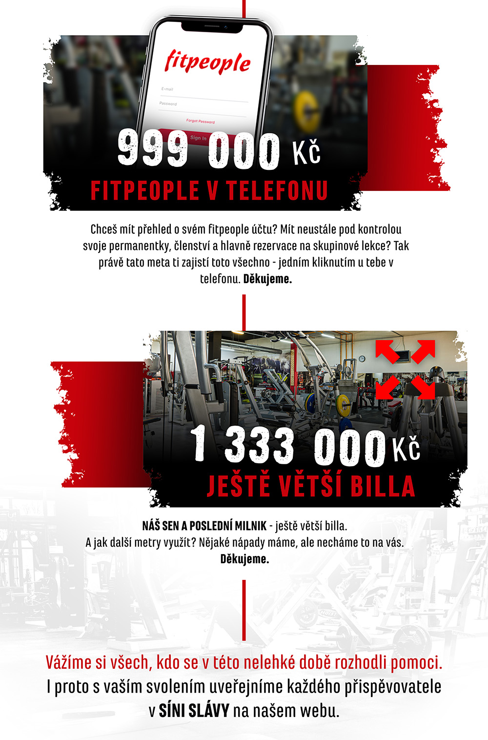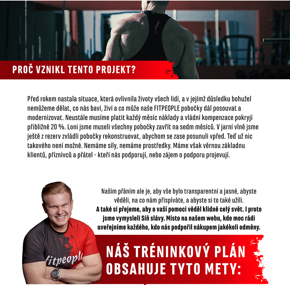 Kvůli pandemii zejí naše fitka prázdnotou. Chcete nám pomáhat, přispívat finančně a nás, „tvrďáky z posilovny“, to vlastně dojímá. Jenže my zase chceme, abyste věděli, na co nám přispíváte, a toužíme vám dát něco na oplátku.