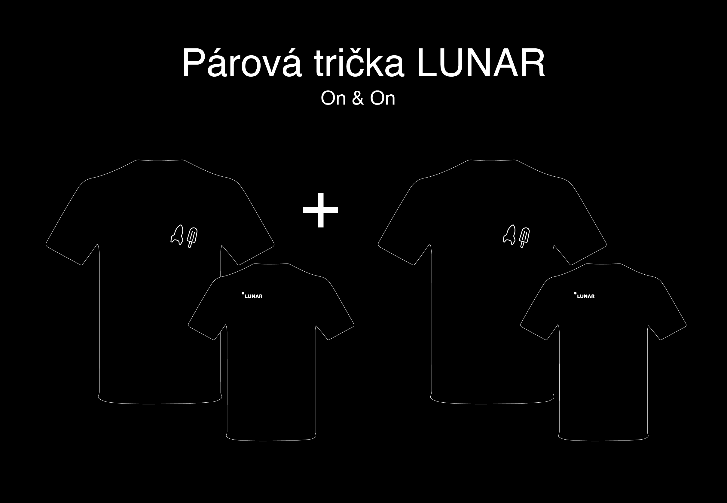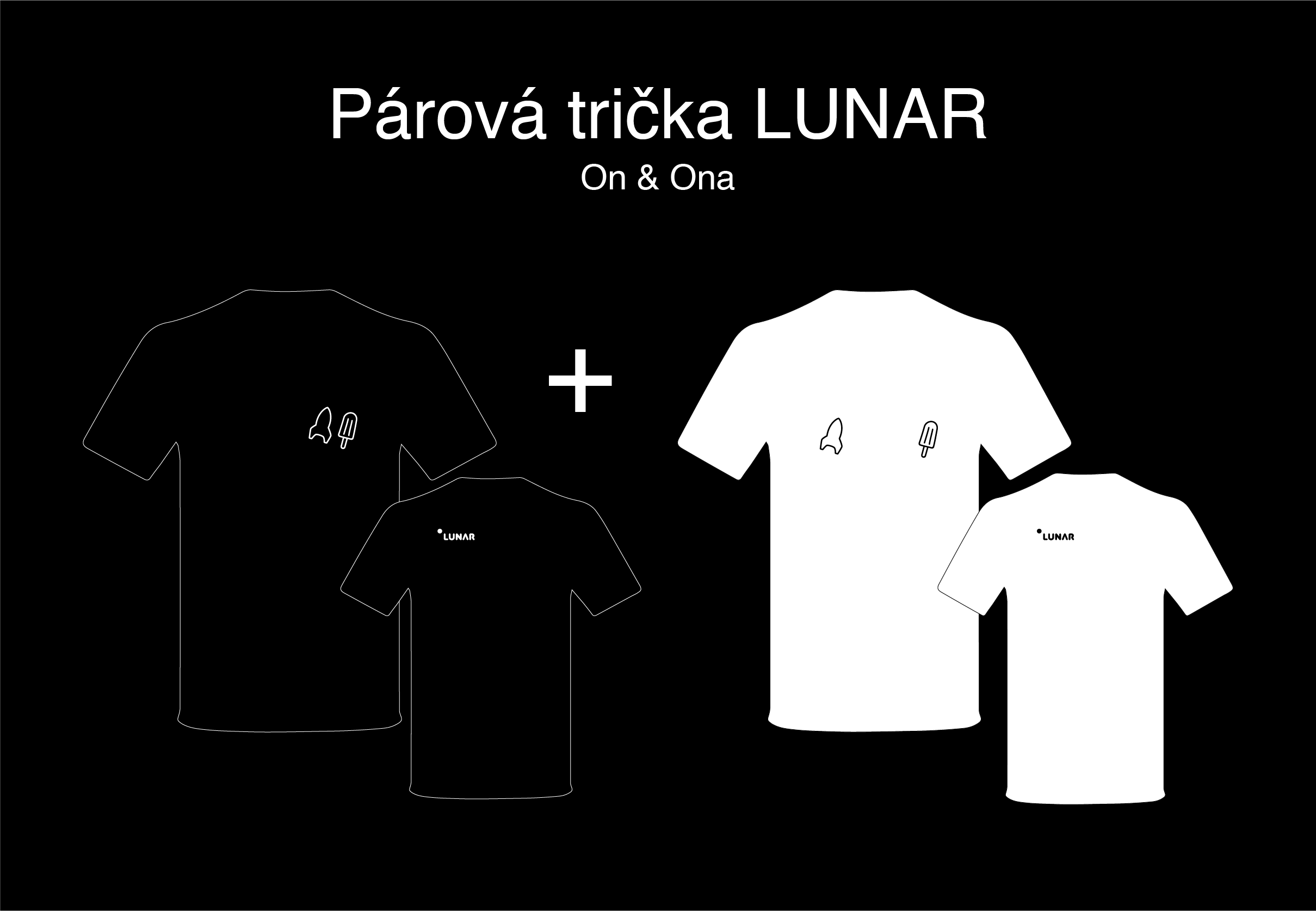 PÁROVÁ TRIČKA: PÁNSKÉ VŽDY ČERNÉ A DÁMSKÉ VŽDY BÍLÉ VE TŘECH VARIANTÁCH PÁRŮ A OPĚT VE VELIKOSTECH S, M, L a XL