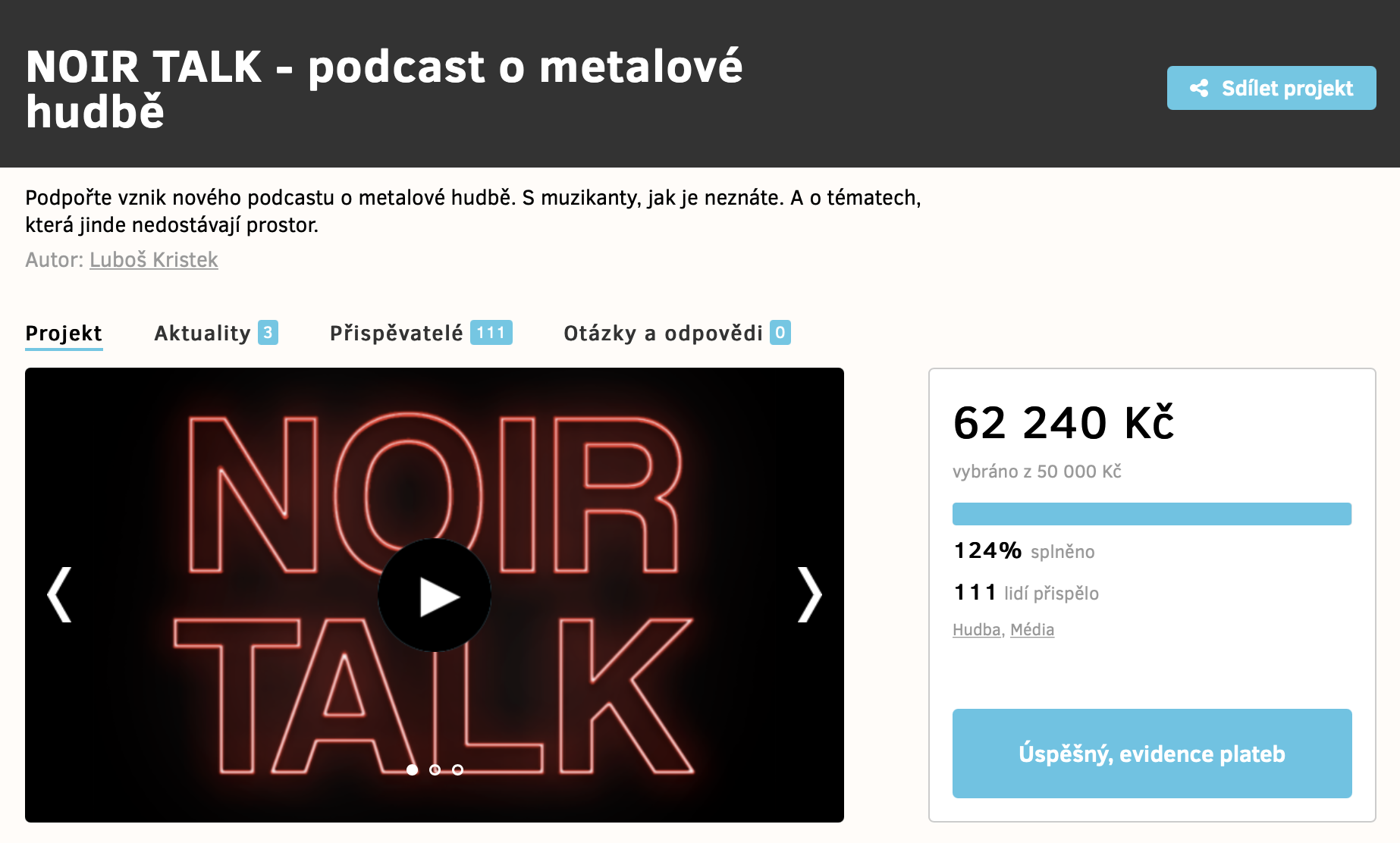 Poděkování letí všem, kteří něco darovali (kapely, pořadatelé, labely, jednotlivci a další), podpořili nebo jen sdíleli. Plnění kampaně bude probíhat dle termínů uvedených u konkrétních odměn, ale instrukce obdrží ještě každý zvlášť na svůj mail, případně bude kontaktován telefonem.