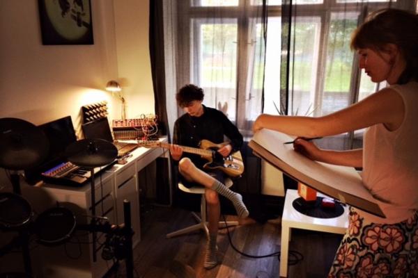 V zápětí potom jsem mu pořídil jeho první akustickou bicí "mini" soupravu a nechal ho, ať ukáže, jestli to nebyla náhoda. A nebyla! U bubnů trávil x hodin denně, a tak, aby nemusel vždycky do sklepa - a aby sousedi netrpěli - doma "přistála" i elektronická bicí souprava - a pak už to letělo - od 6 let jsem ho zapsal do ZUŠky a sledoval jeho talent. Snažil jsem se ho tehdy moc neovlivňovat, nechat tomu volnej průběh - a to se vyplatilo. V 10 letech už zahrál skoro cokoliv, od jazzu po hard rock. A tak jsme muzicírovali a po jedný opravdu vydařený zkoušce jsme se jednoho dne zcela jednoduše domluvili - a začali pracovat na prvním společném projektu. V roce 2016, v Mikiho 11, jsme natočili album "Das Teleskop". Od té doby Miki hodně pokročil, kromě bicích to umí obstojně i se syntezátory, i těmi modulárními. Skládá muziku - nedávno zkomponoval 2 skladby pro "strýčka" Bruna Ferrariho, kde mu vokály zpívá Ema Brabcová z Khoiby a na kytaru hraje Adam Krofian z The Atavists... a nedávno začal taky hrát na kytaru... jsme zase o kousek dál - a tak jsme se rozhodli navázat a pustit se do druhého alba.