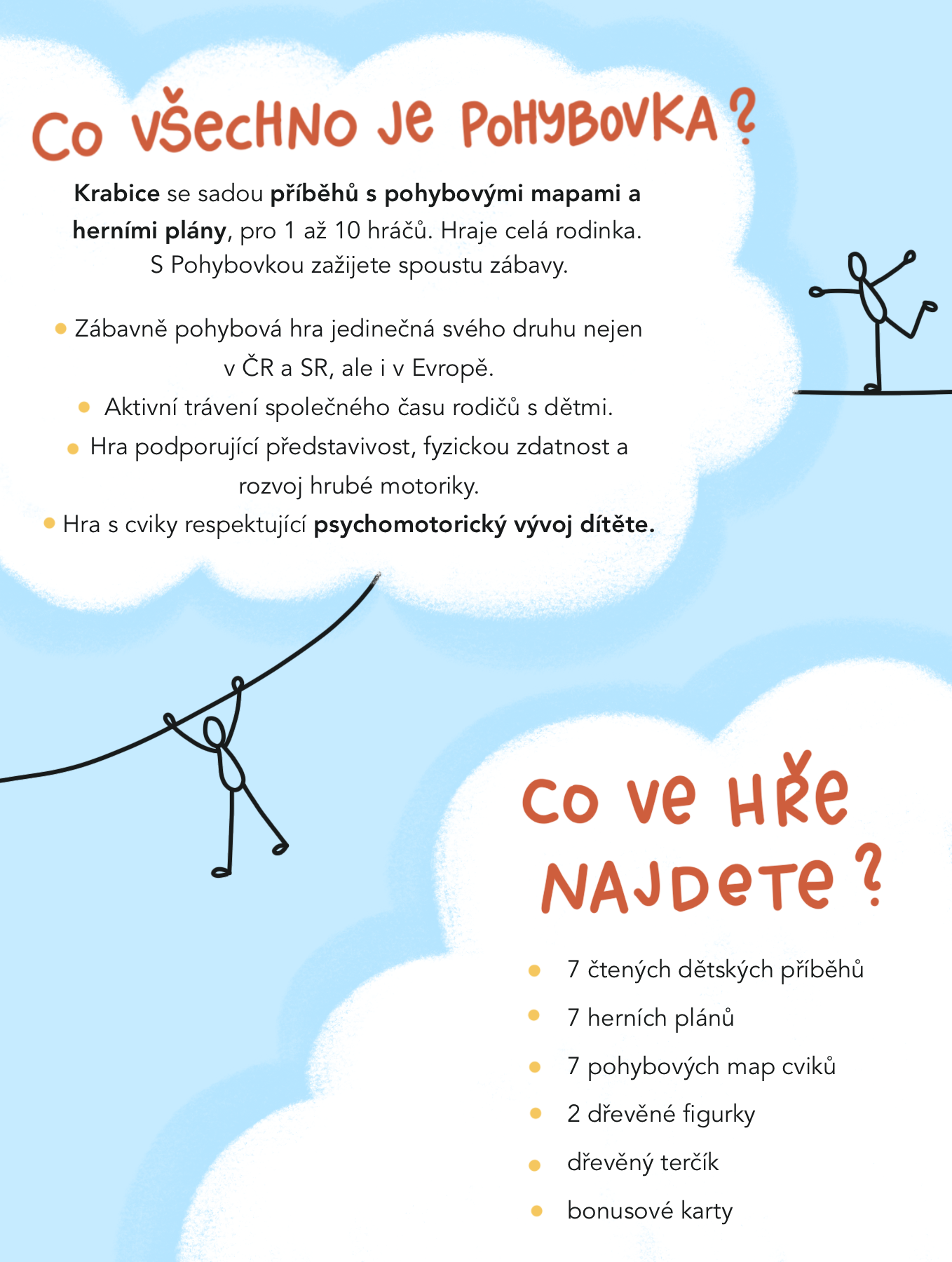 Obohaťte vaše společné zážitky s dětmi. Unikátní zábavně pohybová hra se 7 příběhy. Milují vaše děti pohyb a potřebují se pořádně vyřádit? Pohybovka zaujme všechny děti a rodiče. Pojďte si hru s námi zahrát a pomozte nám s vývojem dalších verzí, děkujeme!