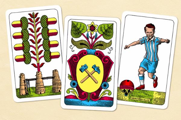 A my si řekli, že takový fenomén si zaslouží svoje vlastní karty. Takové, kde by vzpínajícího se koně, pyramidu nebo mrtvého bažanta nahradilo něco ryze kladenského.