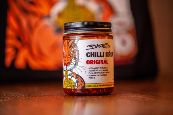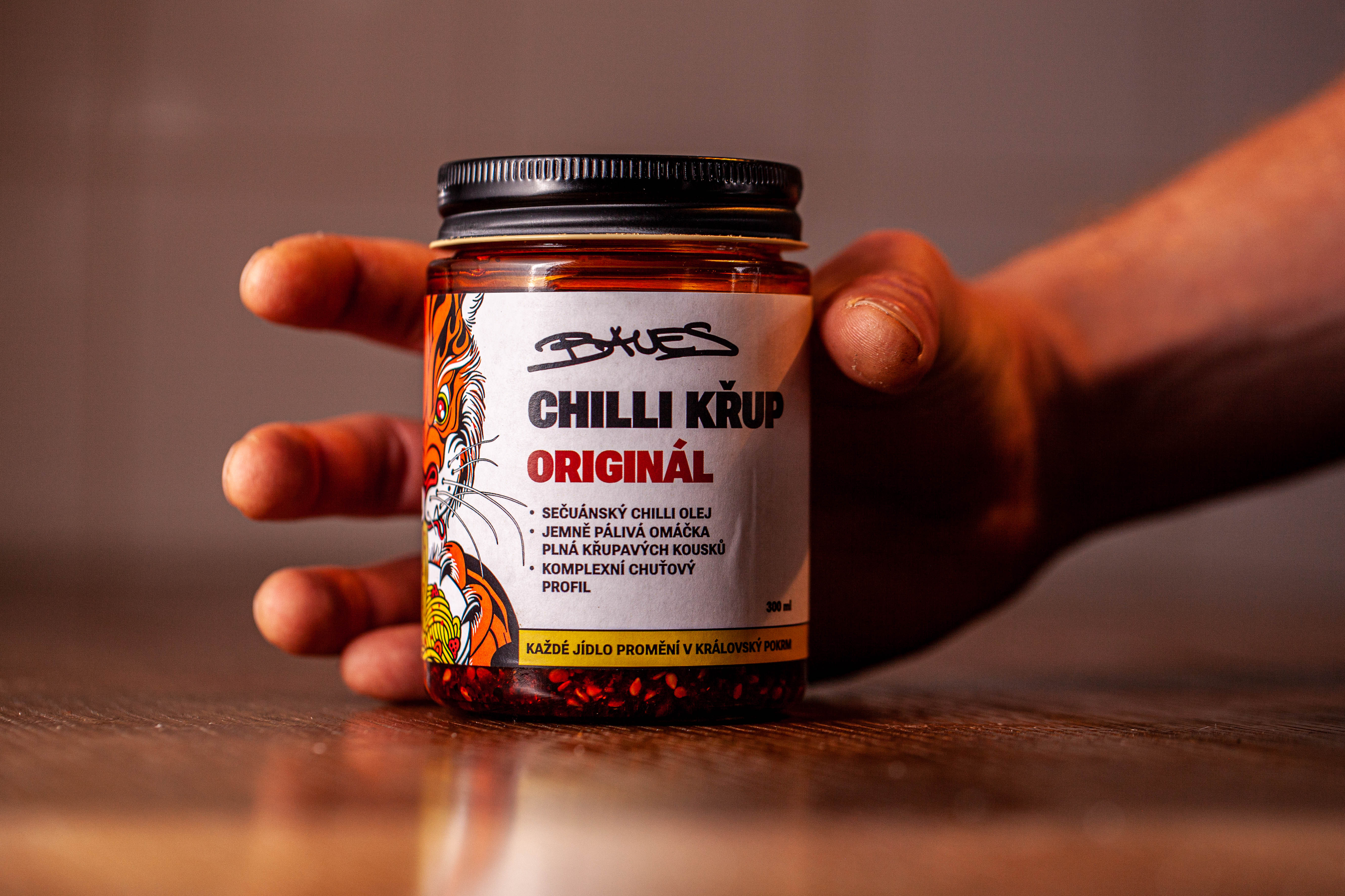 Chilli Křup je univerzální dochucovadlo inspirované tradiční čínskou recepturou. Jeho předností je jemná pálivost a komplexní chuťový profil. Jde o za tepla, hromadou koření, výrazně aromatizovaný olej, který obsahuje velké množství křupavé směsi složené z chilli, sezamu, soli, cukru a sečuánského pepře. Lze jím pokapat prakticky cokoliv a lidé tak činí. Přístupné i těm, kteří se vyhýbají pálivému. Způsobuje závislost a přináší radost do života. Jednou skleničkou zvládnete dochutit i víc než sto jídel.