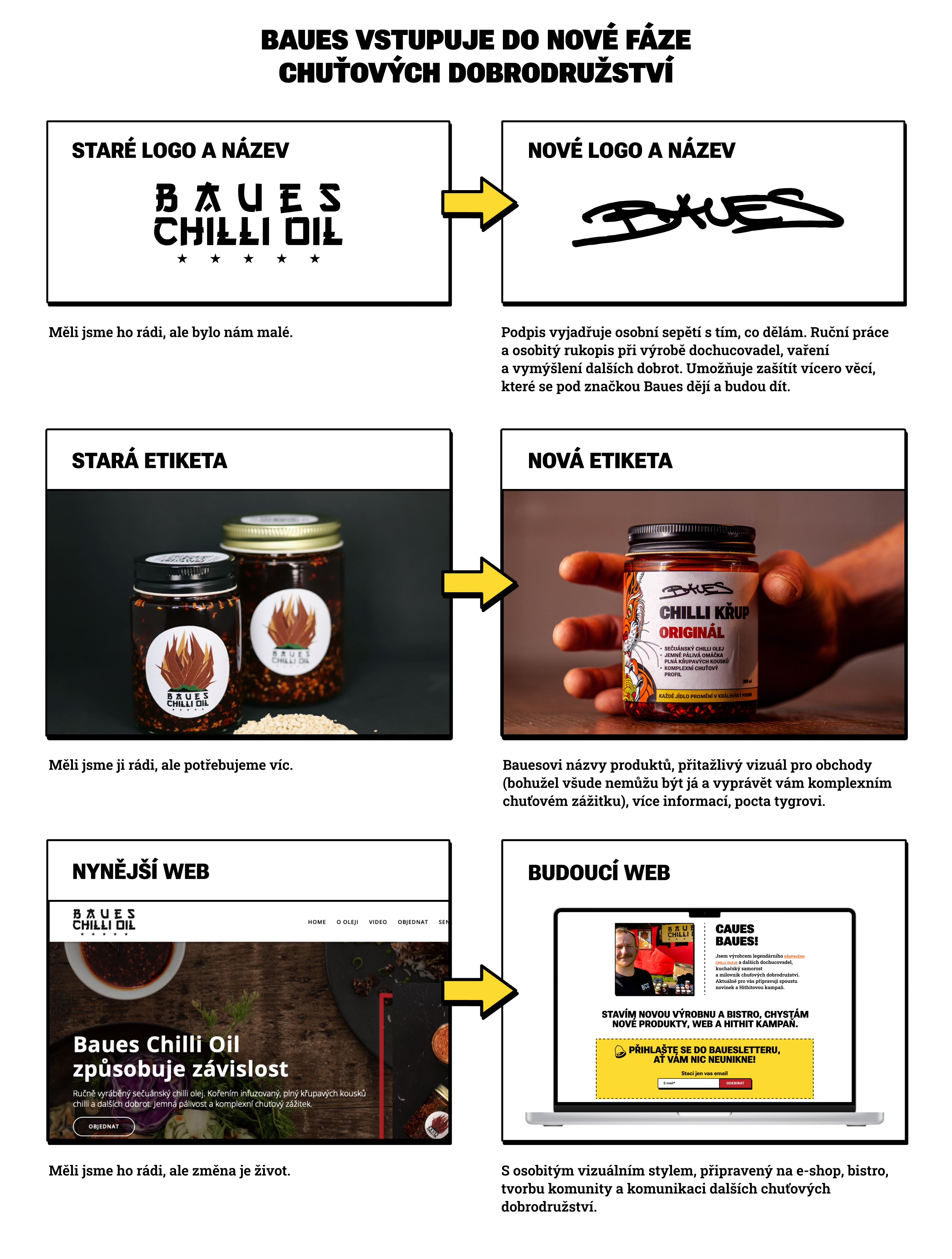 Z produktu Baues Chilli Oil se stává značka Baues. S tím jsou naplánované změny loga a toho, jak moje značka vypadá navenek. Jak se vám to líbí?