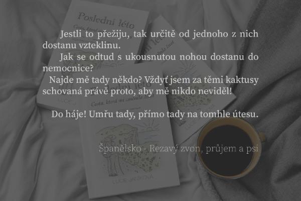 Až loni v létě jsem konečně zvedla zadek ze židle a dala životu druhou šanci. Co mi ukázal? Nechal mě se ztratit, umírat vedrem, mrznout na kraji útesu, bát se o život a nakonec ještě narazit do zdi… Díky tomu mě ale také naučil to všechno překonat, přestat se bát, poznat zajímavé lidi, naučit se nové věci a něco důležitého pochopit. A o tom je Poslední léto - Cesta, která mi změnila život.