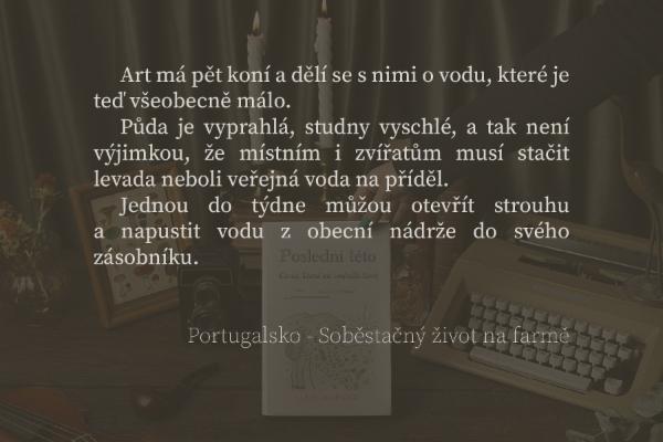 Pobyt na portugalské farmě se mi jeví jako nejhezčí zážitek z celé cesty. Život v přírodě, umět si poradit s mnoha věcmi, žít sama, ale mít kolem sebe lidi, na které je spolehnutí.