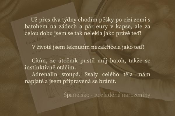 „Ze zápisků z cesty do Španělska a Portugalska v létě 2022 vznikla kniha. Je to příběh zachycující transformaci mladé bojácné holky v odvážnou ženu, která se rozhodla jít za svým srdcem. Tato právě titulovaná vysokoškolská studentka se rozhodla využít své poslední letní prázdniny bez závazků, aby zjistila, zda život může mít nějaký smysl. Vydala se tedy do neznáma hledat odpovědi.“
