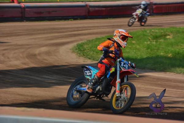 Jsem Matěj z Chabařovic, letos jsem poprvé sednul na motorku upravenou pro Flat Track. Byl jsem ohromen a hned jsem věděl, že to je top. Zúčastnil jsem se MMČR Flat Track a Mistrem ČR v juniorech. Chtěl bych další sezónu obhájit titul.