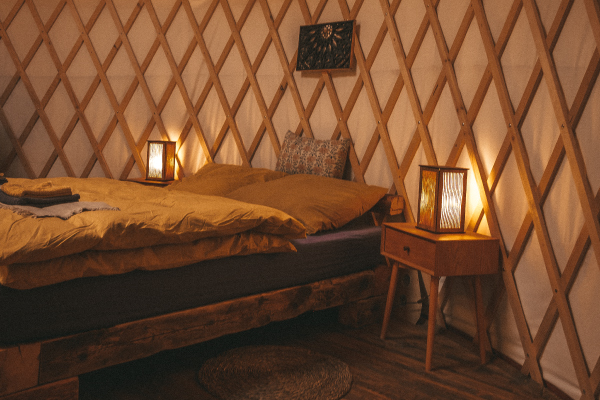 Glamp stojí v neprůhledně odděleném sadu vedle starého hospodářství. Z jedné strany ho lemuje louka a potok, z druhé les. Soukromí v něm najdete dostatek a pokud máte rádi procházky, loďky, nebo cykloturistiku, hned před branou na vás čeká od všeho trochu. Za rohem je rybník Chobot, na jehož druhý konec ani nedohlédnete. V lese kolem něj jsou cyklostezky a traily. V rákosí je zaparkovaná kánoe. Nudit se nebudete.