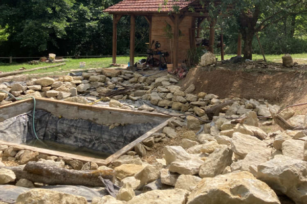 Jakmile se trochu oteplí, zarovnám zbylý terén, položím chodníčky a vysázím stromy i trávník. Taky pro Vás postavím vstupní bránu a parkoviště. Je to dřina, kterou si moc užívám a bude mi skoro líto, až projekt dokončím :).