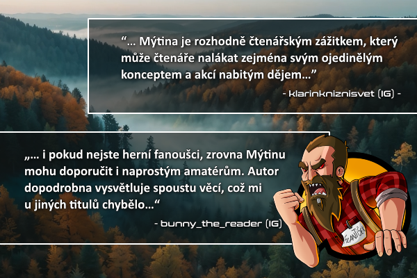 Chcete se dozvědět více o nové české knize a o žánru LitRPG? Dřevorubec František je první NPC, se kterým se hráči při vstupu do Mýtiny setkají. Trpělivě Vám vysvětlí, o co tady běží a také pro Vás má pdf i audio ukázku z knihy.
