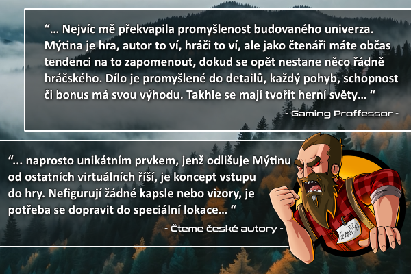 Jedním z důvodů, proč jsem se rozhodl Mýtinu a samotný LitRPG žánr napsat, je vědomí, že je mladý, a potřebuje si vybudovat fanouškovskou základnu. Když jsem četl první dostupné knihy, okamžitě jsem si oblíbil jejich strukturu i “guilty pleasure” pocity ze čtení.