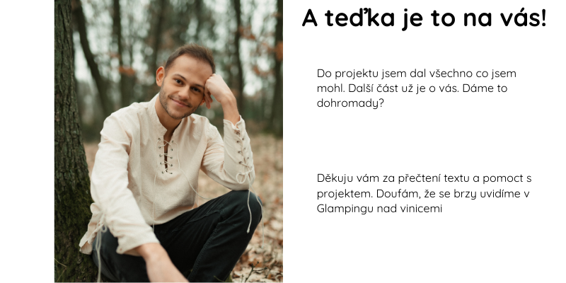 Student architektury, který nechce, aby jeho nápady skončily jen v šuplíku. Navrhl jsem glamping a teď ho chci postavit, ale jako student potřebuji vaši pomoc. Připojte se ke mně a společně vytvoříme místo, kde si lidé budou moci užívat odpočinku a klidu.