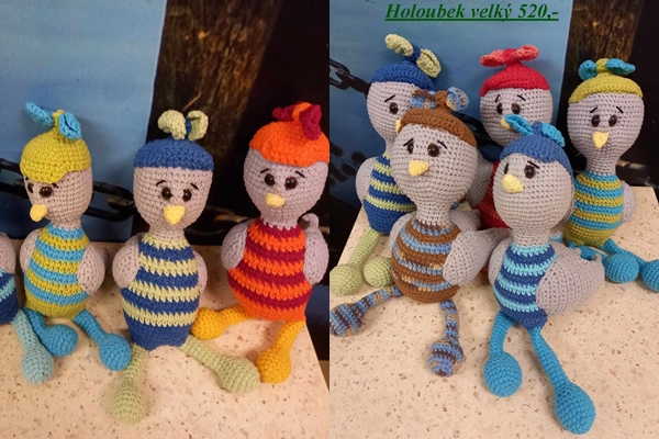 Cena 250 Kč plus háčkovaný holoubek Toníček malý 370 Kč a 109 Kč poštovné